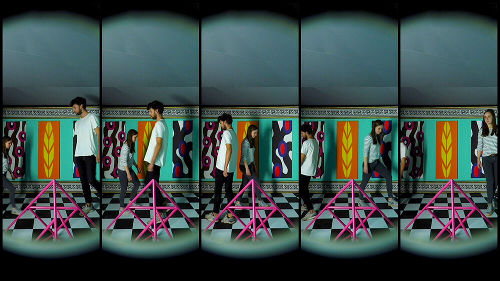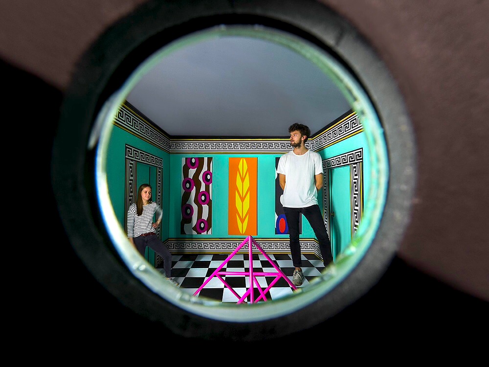 Into the eye is a performative installation that plays with the optical illusions of depth and perspective.