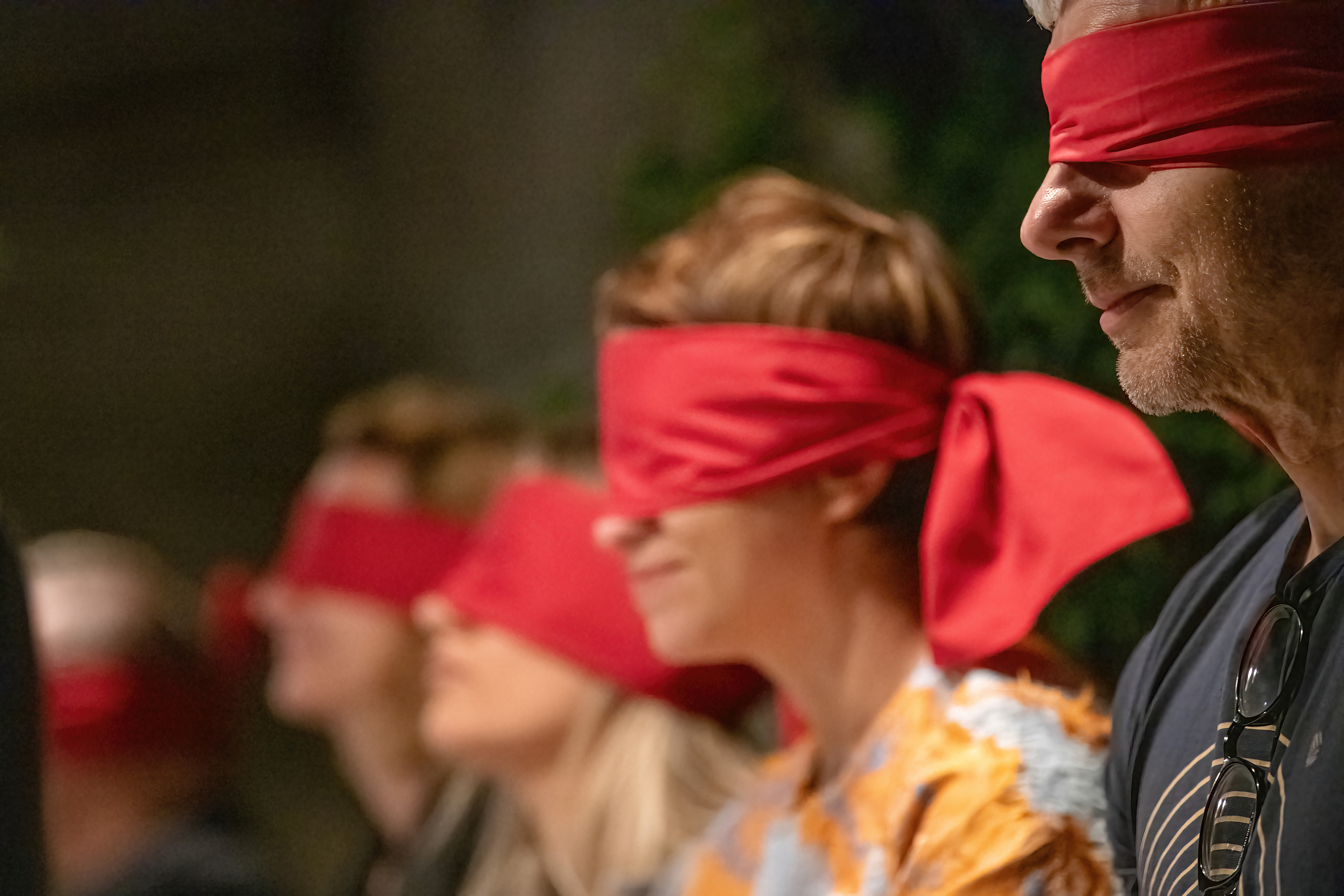 Guided by a host, guests move through a sequence of performative courses that explore themes of connection, trust, vulnerability, play and community.