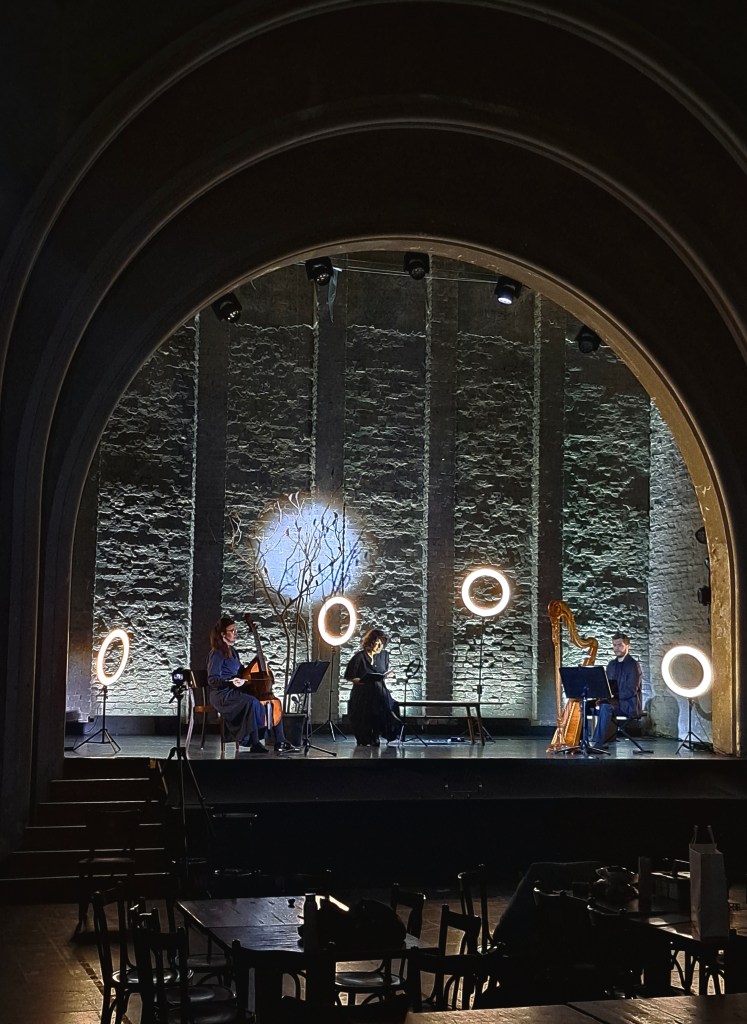 The gambist Juliane Laake and the harpist Maximilian Ehrhardt play compositions of the late 18th century and the actress Sally Jaber recites ghost stories tales dealing with the wild hunt.