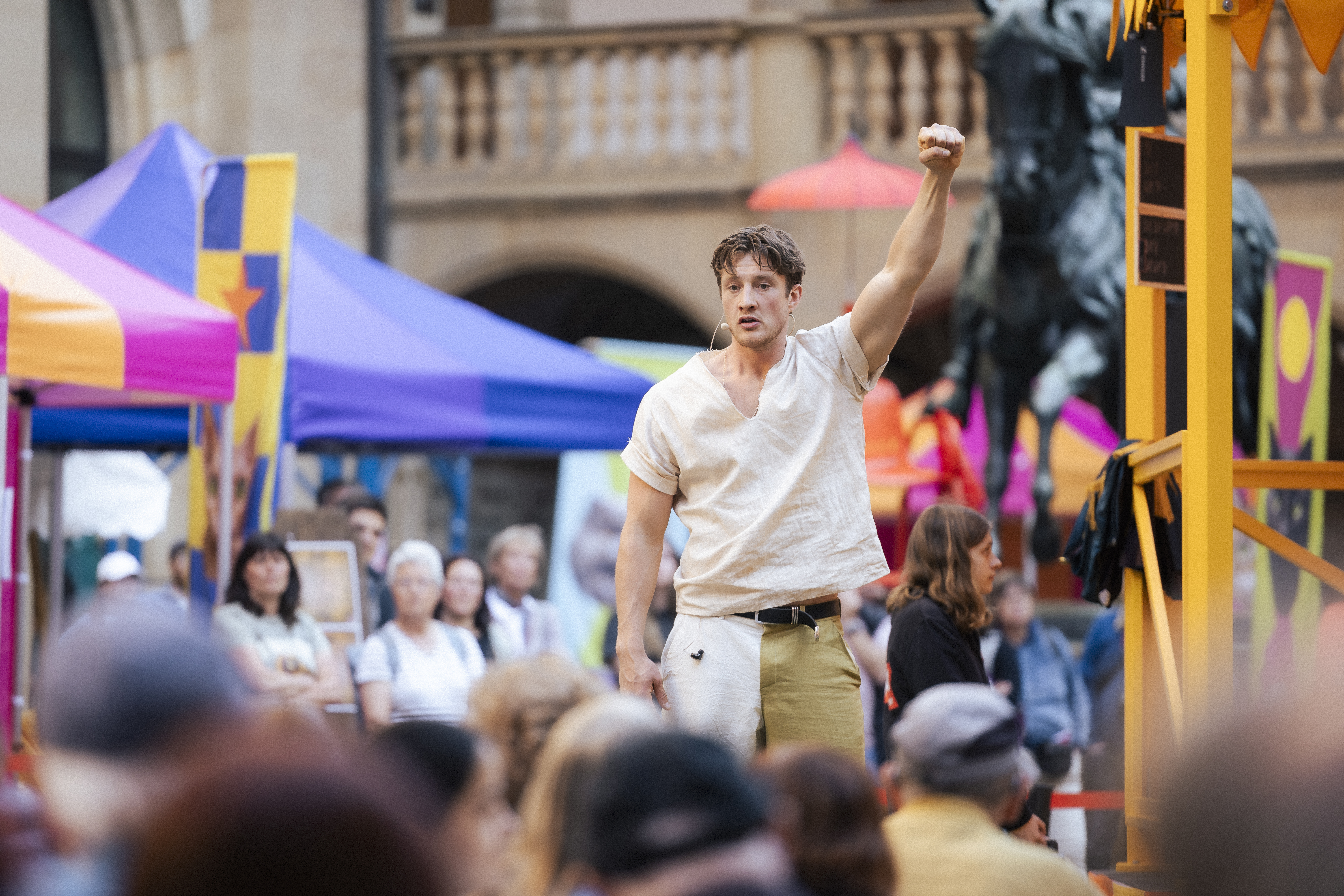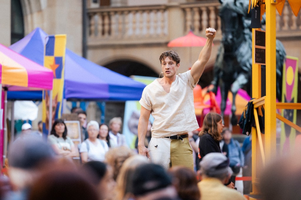 Performative, musical, and multimedia elements merge into a visually stunning, funfair-like world . Visitors are invited to actively participate and immerse themselves in the early 16th century with all their senses. The focus is on entertainment—but without losing sight of the serious background of the historical events. Expect captivating musical contributions from regional musicians in an open-stage setting, along with play stations, picnic areas, food and drink stands, information areas, and puppet theaters. This immersive experience brings the injustices of the era to life with a wink in one eye and a hint of a tear in the other. The story is interpreted in a contemporary style—surprisingly different from what you’d expect.
